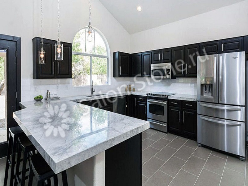 Большая кухонная столешница под мрамор